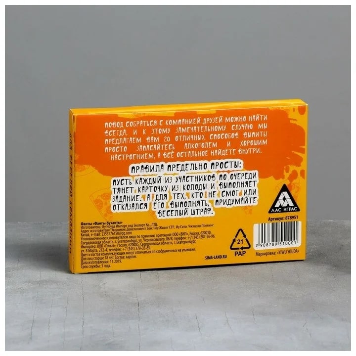 Купить игра для компании "фанты буханты" 20 карт от 100 руб. с доставкой до пункта выдачи в Борисоглебске. Интернет магазин ДекаМаркет. Оплата при получении.
