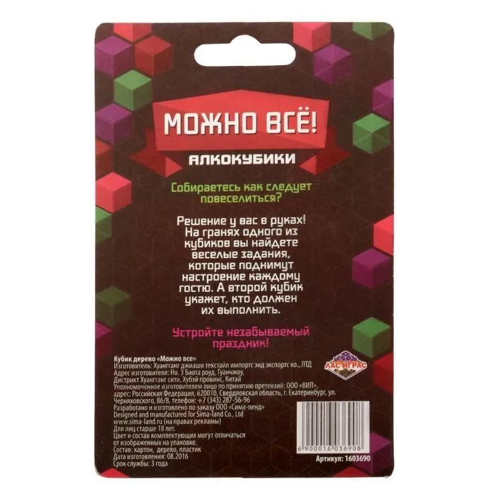 Купить кубик "можно все", алкокубики для принятия решений от 60 руб. с доставкой до пункта выдачи в Борисоглебске. Интернет магазин ДекаМаркет. Оплата при получении.
